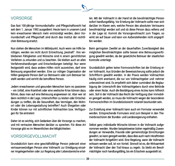 sofort handlungsfähig. Vor Erteilung der Vollmacht sollte man sich
