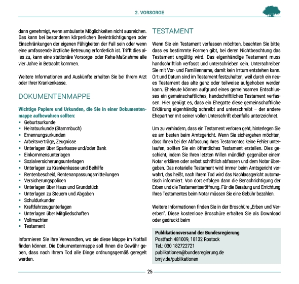Weitere Informationen finden Sie in der Broschüre „Erben und Vererben“.