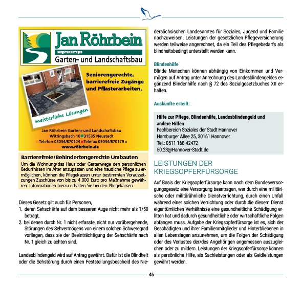 Hilfe zur Pflege, Blindenhilfe, Landesblindengeld und